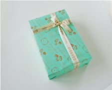 白い箱のお菓子はオリジナルの包装紙にリボンをかけてお渡しします。