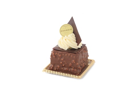 アーモンド入りチョコレートでコーティングされたキューブの中は口溶けの良いミルクチョコレートのガナッシュ、香り良く炊き上げたキャラメル、ザクザク食感のフィアンティーヌを小麦粉の入っていない軽い生地でサンドしました。